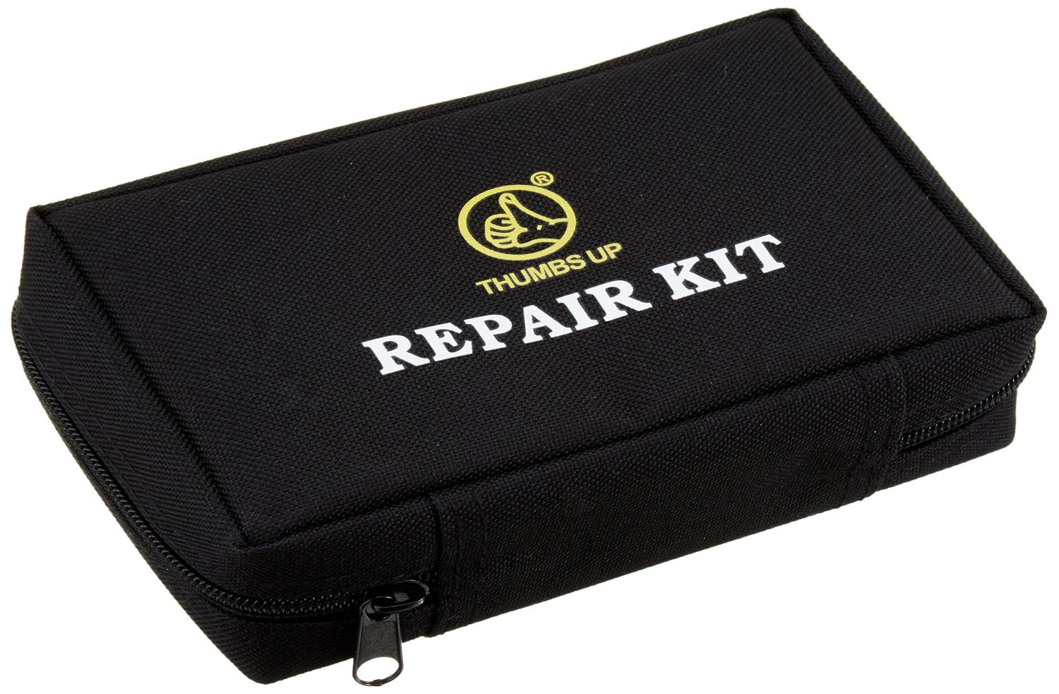 霧吹きで漏れチェックもできる安心のパンク修理キット。強力な日本製接着剤を採用し、必要な道具がすべて揃ったオールインワン仕様。シンプルな収納ケース付きで持ち運びや紛失防止にも便利です。